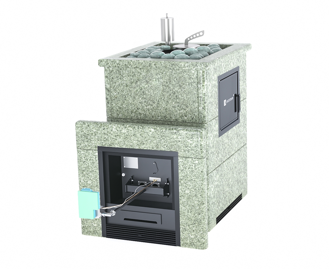 Боковой вход в каменку (М2) позволяет провести более быструю