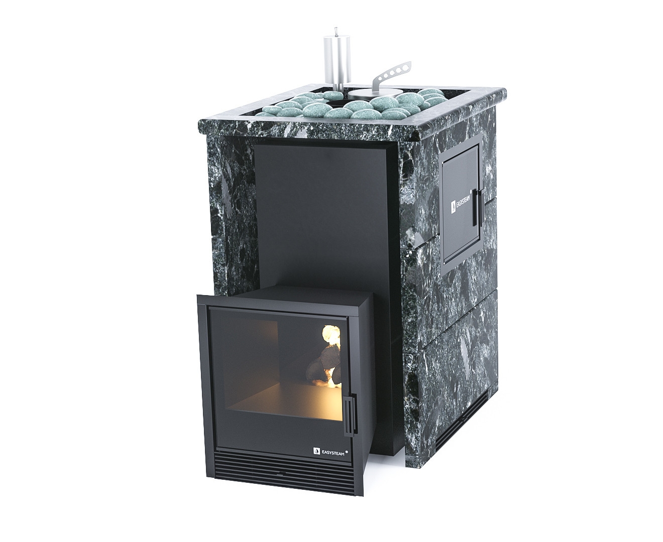 Боковой вход в каменку (М2) позволяет провести более быструю