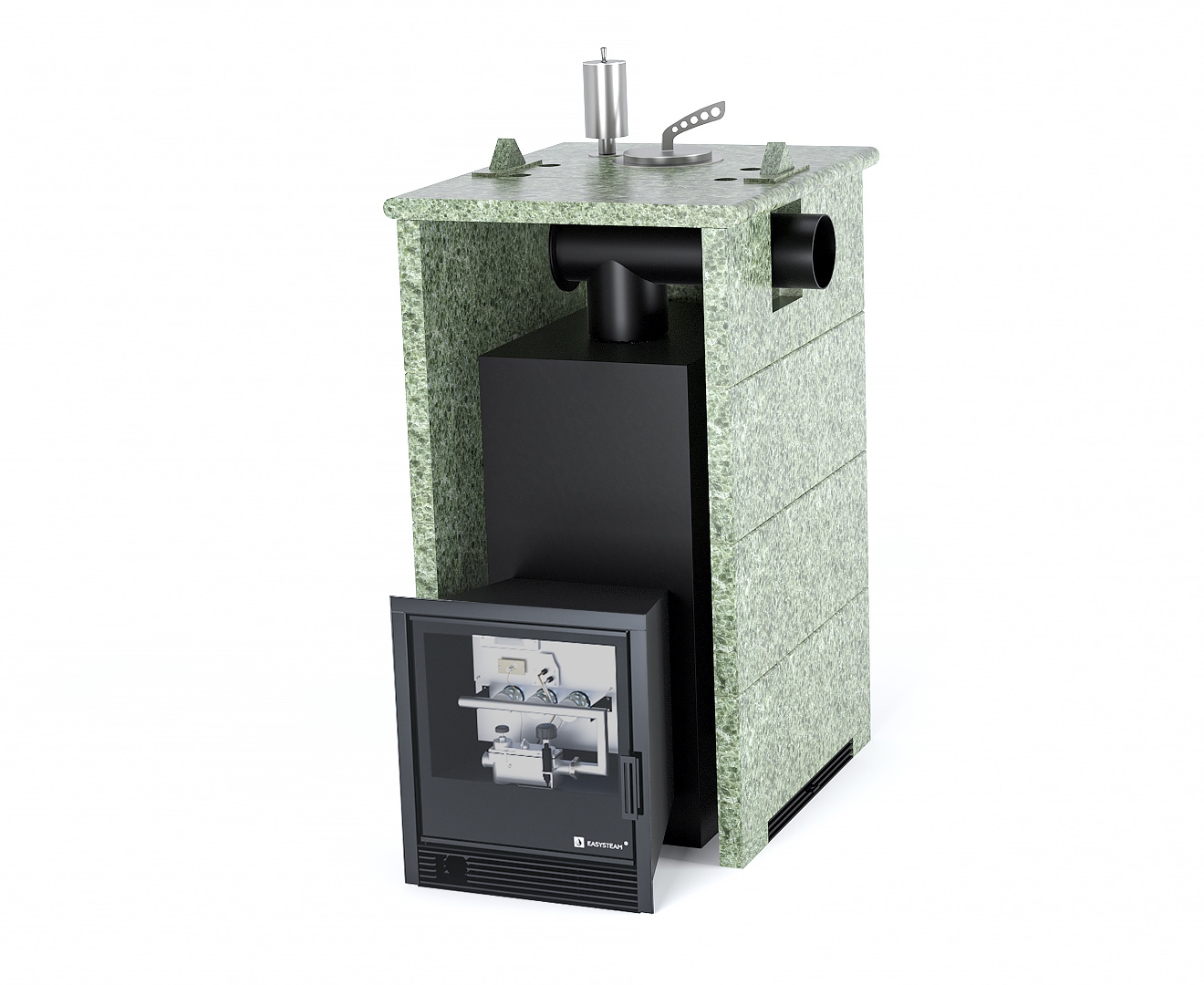 Закрытая каменка и встроенный парогенератор гарантирует