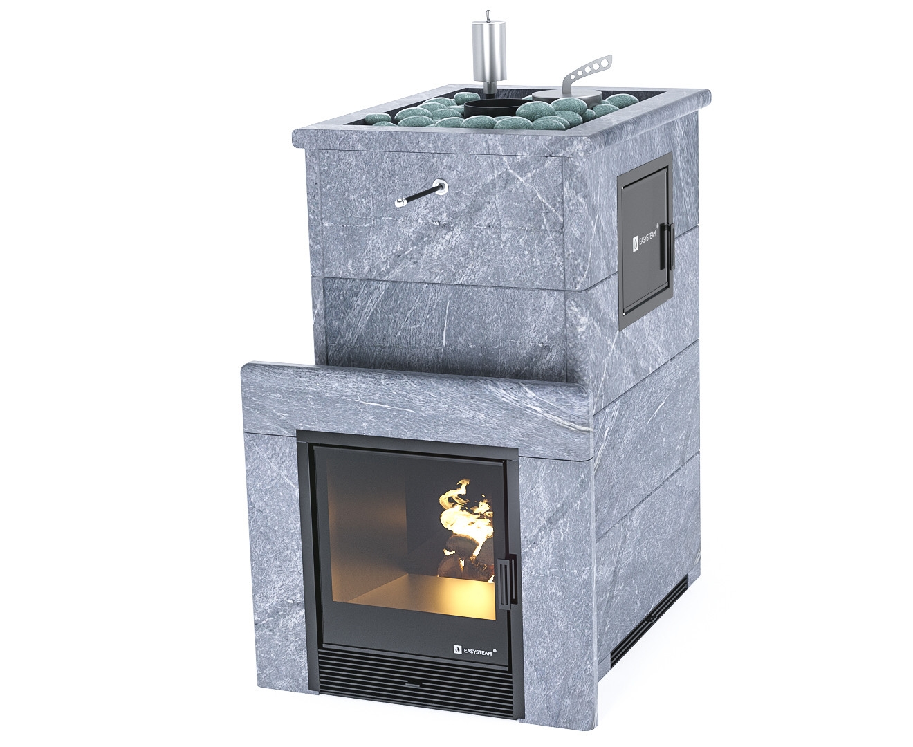 Боковой вход в каменку (М2) позволяет провести более быструю