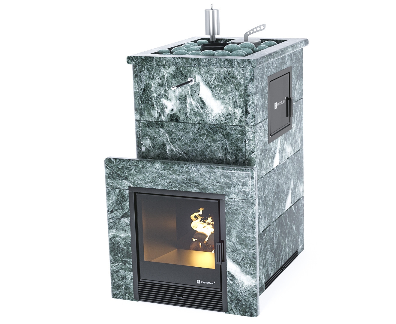 Боковой вход в каменку (М2) позволяет провести более быструю