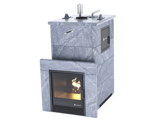 Печь Геленджик М2 в полноценном кожухе - Варианты кожуха - Талькохлорит, Защита топки - Футеровка, Марка стали - AISI 430, Вид топлива - Дрова Стандартная комплектация, Боковой вход в каменку - С тыла
