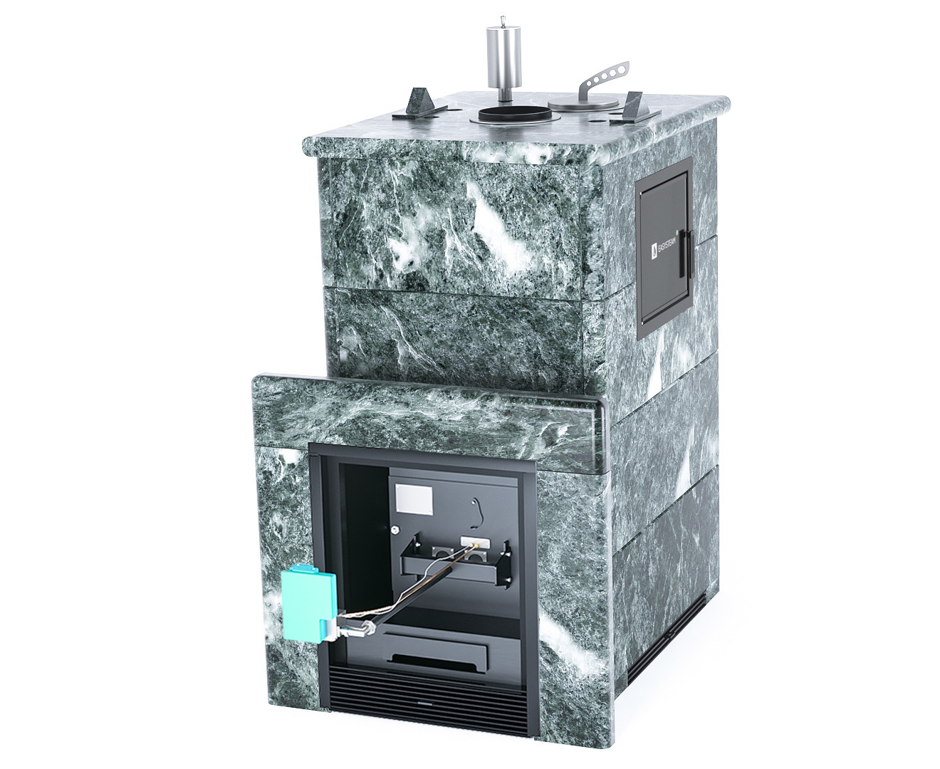 Боковой вход в каменку (М2) позволяет провести более быструю