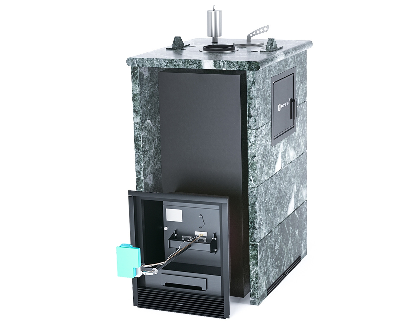 Боковой вход в каменку (М2) позволяет провести более быструю