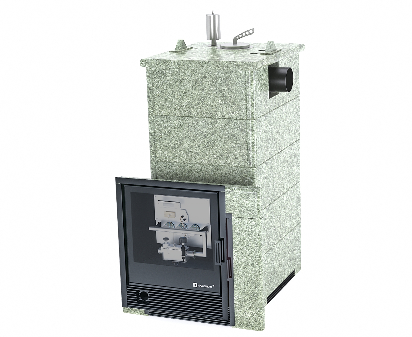 большое количество легкого пара, а огонь, пылающий за панорамным стеклом подарит атмосферу тепла и уюта в вашей бане.