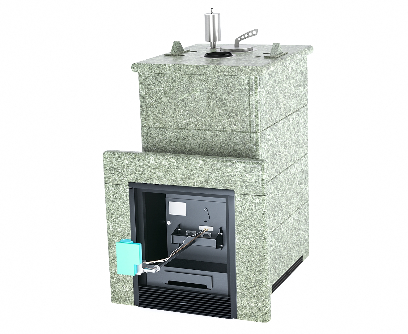 Печь Сочи в полноценном кожухе - Варианты кожуха - Жадеит (Цена по запросу), Защита топки - Защ. экраны, Марка стали - AISI 430, Вид топлива - Газ, дрова Комплектация с ГГУ-40